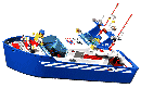 LEGO® botenIk heb een vissersboot, die lijkt hier een beetje op. Je kunt er nog meer mooie boten mee maken. Die bedenk ik dan zelf. Onder de boot kan een speciaal motortje gehangen worden, dan kun je ermee in het water spelen. |
