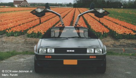 ![]() The DeLorean from Mario in front of a red/yellow tulipfield in the spring near the town called Alkmaar. |
