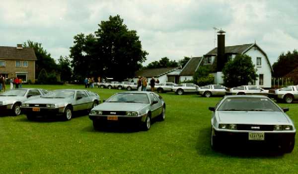 a bite. The gentlemen were dressed accordingly: with DeLorean ties and DeLorean pins. Thousants visitors became influated during three days with the DeLorean. De movies Back to the Future were launched recently, so the young ones recoignised the car. Much publicity followed at radio, television and in verious newspapers and magazines. Een real club was not founded, but a small club of friends kept contact during several years. More events followed: a big meeting in Soest with 35 DeLoreans. |