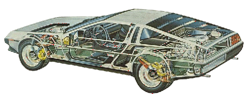 Maintenance Het body panels are made of brushed Stainless Steel (SS 304). This SS is often mentioned as "dairy grade" because this sort is often used in kitchens. SS 304 is softer then SS 316. SS 316 is often used in the industrial industry. The SS panels have no "glans" or any other coating, but are brushed in the factory. Greasy fingers are shown on the SS when touched. The SS is simply cleaned with a SS cleaner. Light scratches are easily removed with a 'schuurpapiertje'. De body of the car is made of fiberglass. The Stainless steel panels are connected to this body. The car has an 'epoxy dipped soft steel frame', designed by Lotus and has several simularities with the Lotus Elan. Repairs There are no officiële dealers of the DeLorean in the Netherlands. Many parts of the engine are similar to that one used in the Peugeot 604, Renault 30 (V6), Renault Alpine A310 or Volvo 260 (V6). For repairs of the engine, most of the time you can go to a dealer of one of the mentioned types. Other parts are hard to get in the Netherlands. Dat means that when you are not able to repair the car yourself, you have to go to non-dealership garages. Most of the time, they are not familiar with the specific technics of the DeLorean. When they are not familiar with ordering the parts through the internet, you might have a chance that they use alternative parts, which might influence the use of the car. How and where to order parts, you can read at our page Technic. Mainpage All rights reserved © M.G. Perotti |